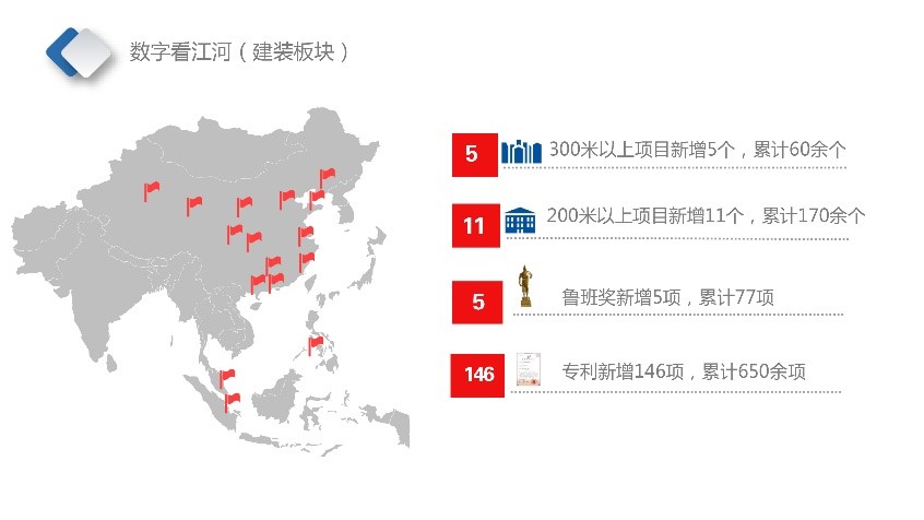 一年來,建筑板塊產(chǎn)業(yè)單位在海內(nèi)外接連中標(biāo)成都天府國(guó)際機(jī)場(chǎng)、北京環(huán)球公園、北京世園會(huì)、澳門主題公園度假村等一大批有影響力地標(biāo)工程,其中中標(biāo)300米以上項(xiàng)目5個(gè),累計(jì)60余個(gè);200米以上項(xiàng)目11個(gè),累計(jì)170余個(gè);在北京城市副中心、中國(guó)尊、天津周大福金融中心、昆明恒隆廣場(chǎng)等重大項(xiàng)目中,精益求精、敢打敢拼,積極響應(yīng)客戶需求,充分發(fā)揮“江河鐵軍”精神,打造高標(biāo)準(zhǔn)、高質(zhì)量精品工程,贏得了客戶的高度贊譽(yù)。行業(yè)龍頭地位凸顯,與第二梯隊(duì)拉開了差距,江河的金字招牌更亮了。