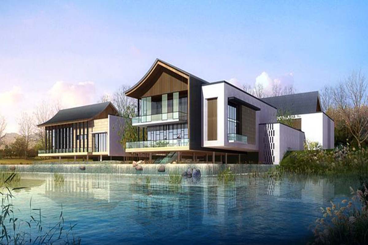 幕墻類型: 玻璃幕墻、鋁合金百葉、開放式石材幕墻、碳化木墻面等